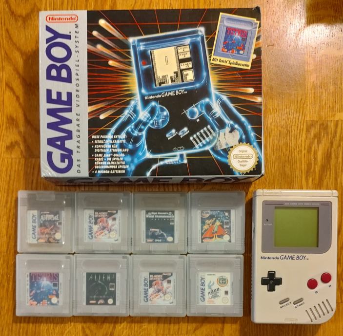Prodajem Nintendo Game Boy Classic očuvan i normalno radi, 8 igrica, originalna kutija i kabel za spajanje s drugim Game Boyem.