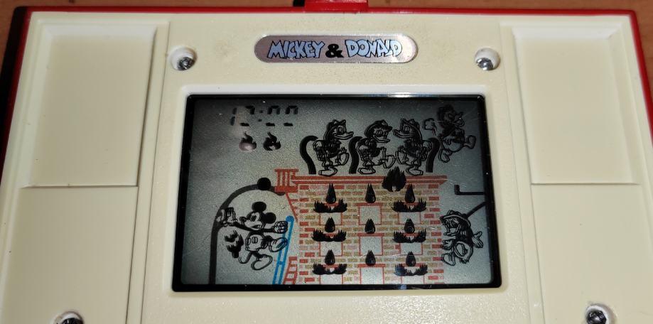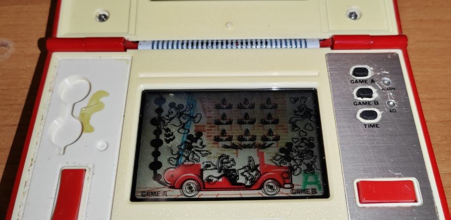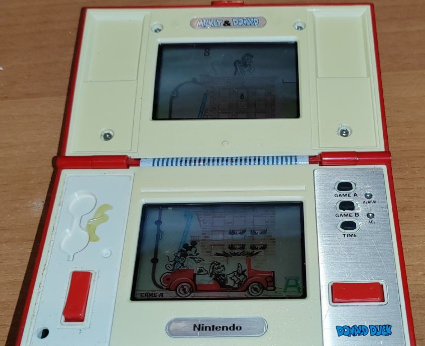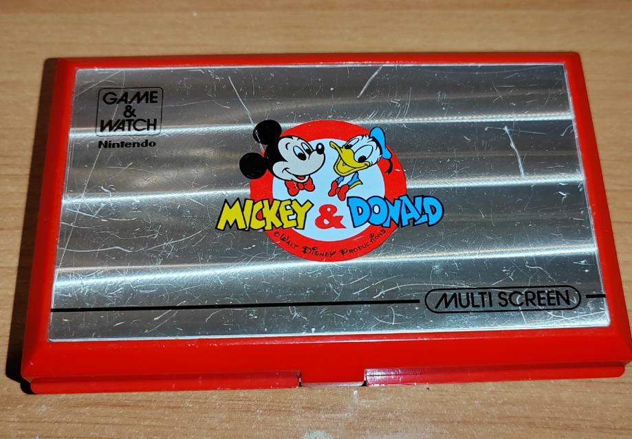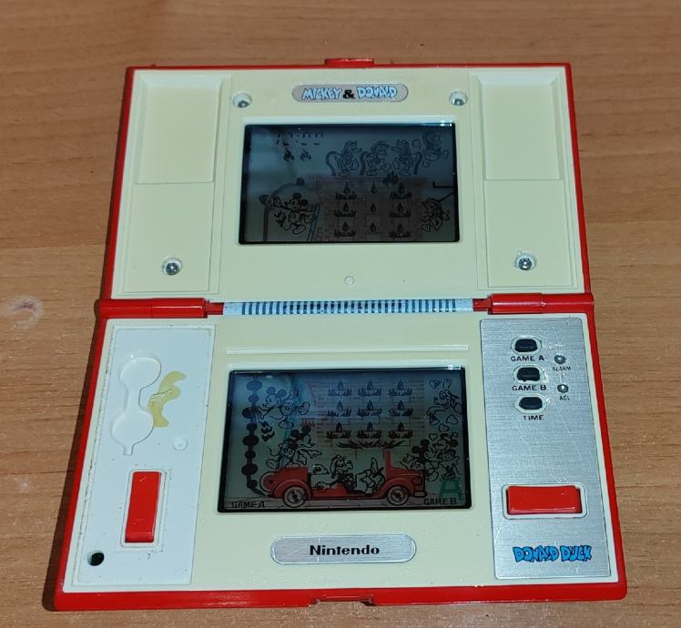 Nintendo game&watch konzola Mickey and Donald iz 1982 godine, kozola radi ali je izmučena, nema grafiku na lijevoj strani, netko je otvarao i krivo zasarafio vijak, vidi fotke, ekrani su ispravni ali gornji ekran ne pokazuje sve simbole, zbog kablica koji povezuje ekrane... Kako bilo konzola je za popravak ili djelove i kao takvu je prodajemo.. sa obzirom na rijetkost cijena je fiksna!