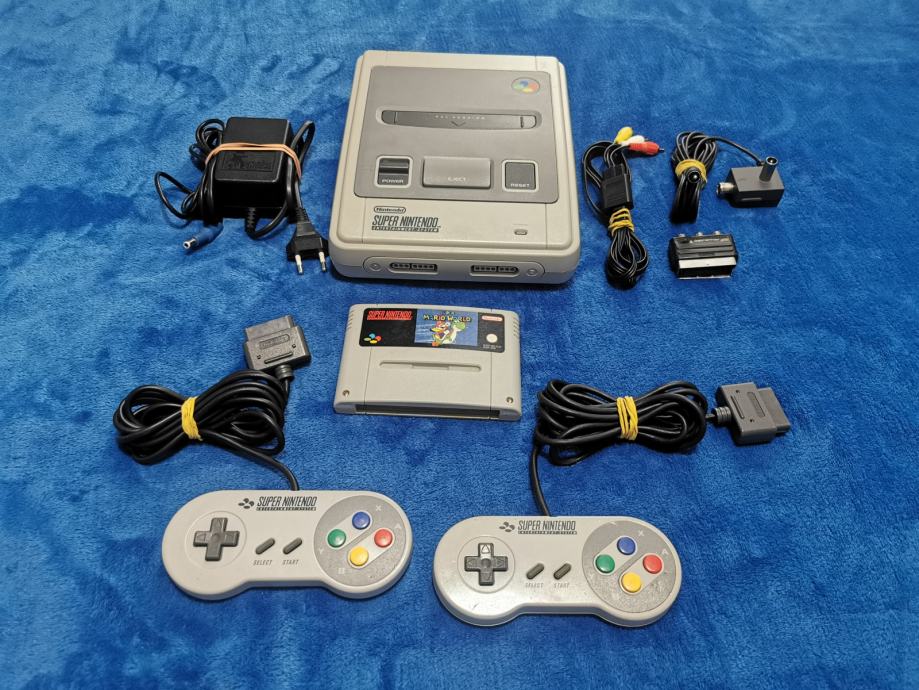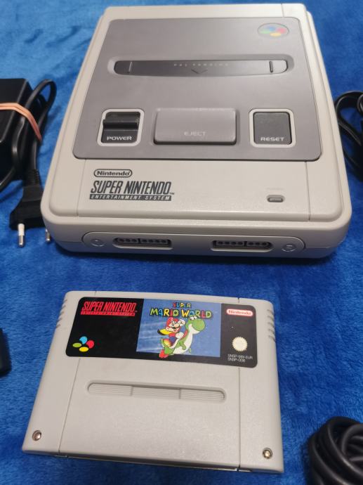 Super Nintendo + 2 joystica + mario world igra + napajanje + kabeli