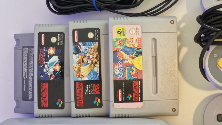 Prodajem rabljeni Super Nintendo komplet koji uključuje konzolu, 3 igre i 2 joysticka. Konzola je u dobrom stanju sa svim potrebnim kablovima za igranje. Savršen izbor za ljubitelje retro igara ili kolekcionare Nintendo konzola.