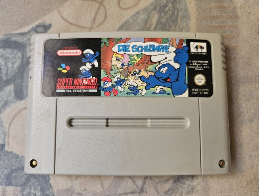 Original i ispravna igrica na engleskom jeziku Štrumfovi / The Smurfs PAL verzija, za Super Nitendo SNES konzole.