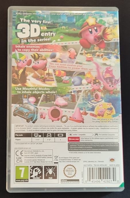 Prodajem igru Kirby and the Forgotten Land za Nintendo Switch. Disk i kutija su u odličnom stanju 10/10. Cijena je 38 eura. Molim bez zamjena. Šaljem putem PayProtecta ili Boxnow dostavom nakon uplate na račun. Cijena je fiksna.