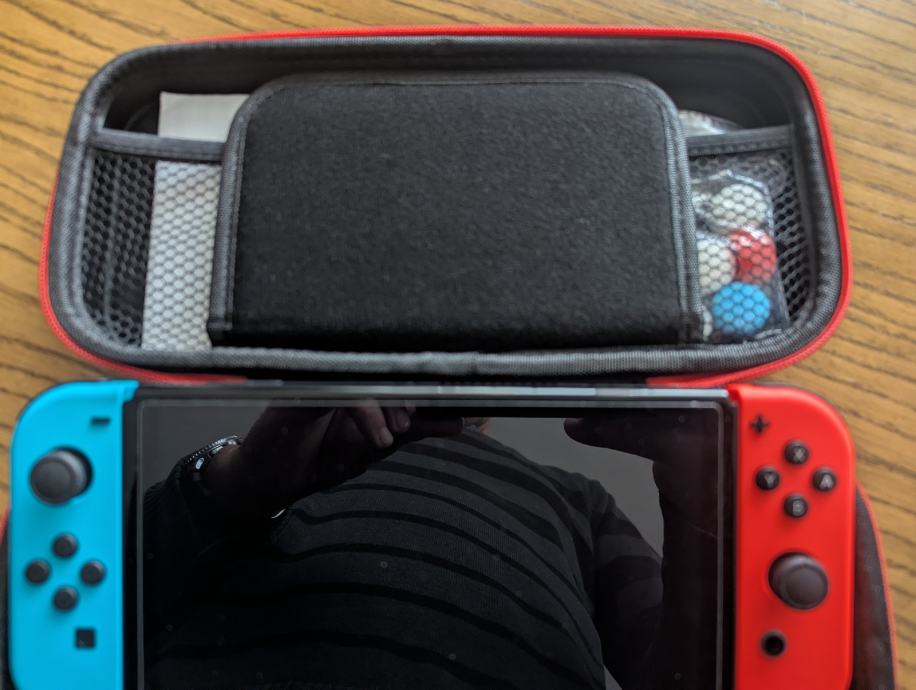 Prodajem Nintendo Switch OLED konzolu s crvenim i plavim Joy-Con kontrolerima. Konzola dolazi s torbom za transport koja ima prostor za igre i dodatnu opremu. Sve funkcionira kako treba.