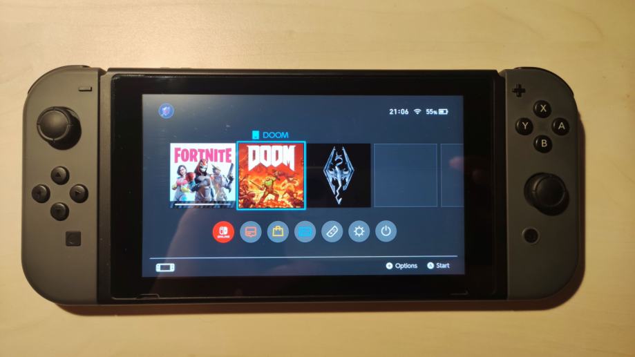 - konzola Nintendo Switch sa sivim parom Joy-con kontrolera