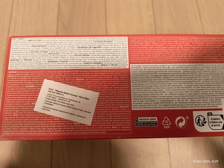 Prodajem Nintendo Switch Console - Red & Blue Joy-Con HAD v1.1 koji sam dobio nakon produženja ugovora s A1 u svibnju 2025.