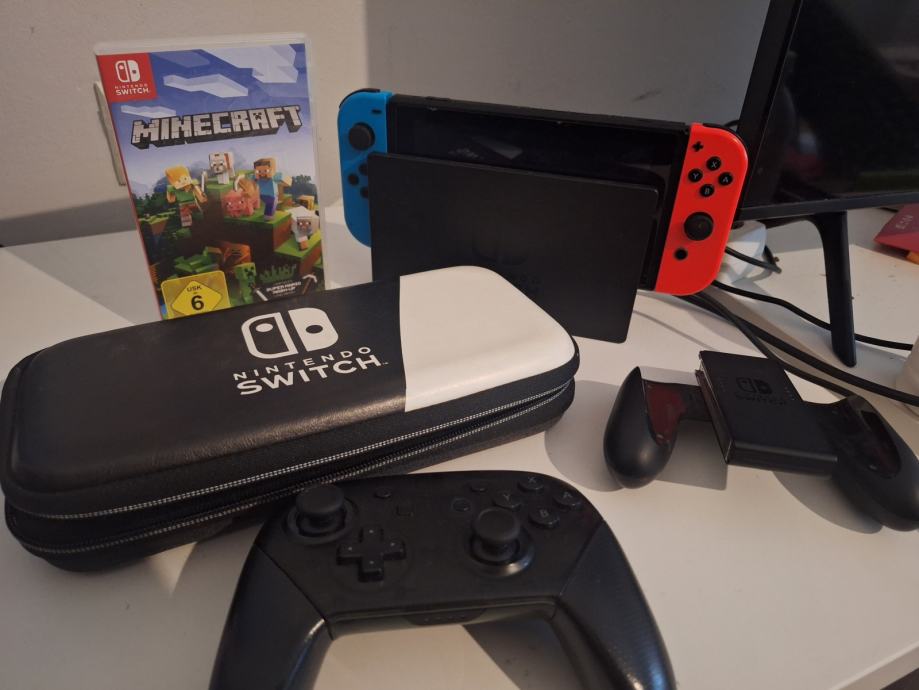 Uz nju ide Nintendo Switch Pro kontroler, Sun Disk micro SD kartica 128 GB, torbica za Nintendo te igrice Minecraft i Fifa 23.