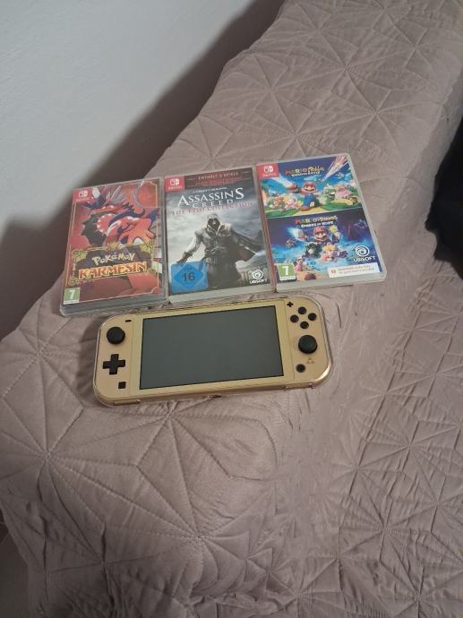 Prodajem Nintendo Switch Lite konzolu u zlatnoj boji s motivom Zelda. Konzola je u funkcionalnom stanju i dolazi s tri igre: Pokémon Karmesin(Scarlet) , Assassin's Creed The Ezio Collection I Super Mario Rabbids(Kingdom Battle & Sparks of Hope).Uključena je i zaštitna maska.