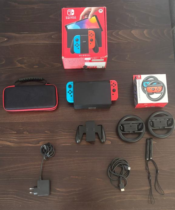 Dolazi sa svom originalnom opremom iz pakiranja, uključujući 2 komada Joy-Con volana i torbica.