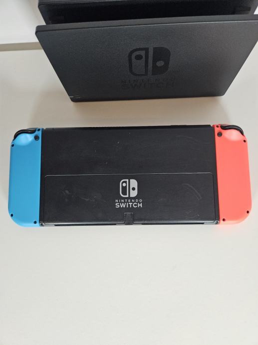 Nintendo Switch OLED model u skroz ispravnom stanju. Mana mu je jedino nekoliko točkica i ogrebotina po ekranu(vidljivo na slikama).