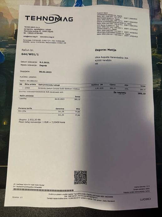 Prilažem račun u slikama. Kupljen u Tehnomagu u Varaždinu.