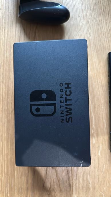 • Nintendo Switch konzola (V1) s originalnim dockom, napajanjem i mogućnošću igranja na TV‑u i u prijenosnom modu.