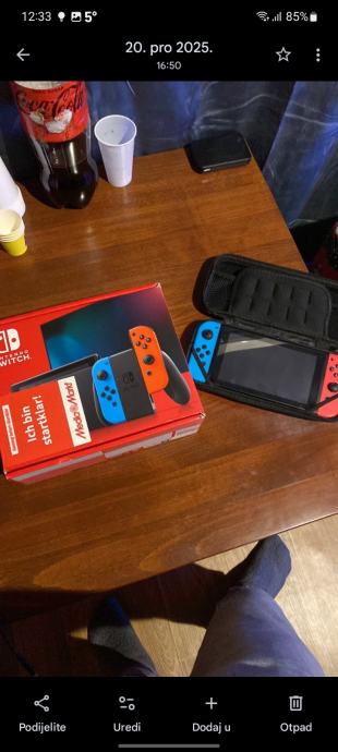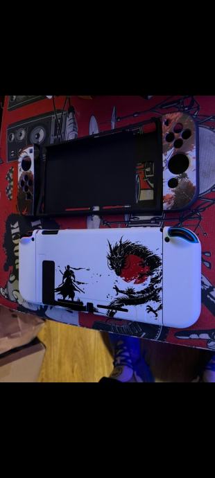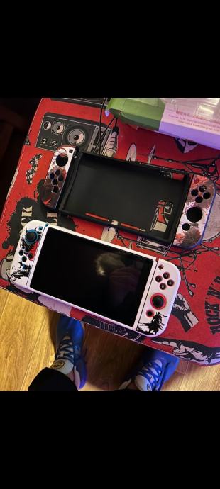 Uz konzolu dolazi kutija,zastitno staklo na konzoli,dvije zastitne maskice za konzolu i joyeve,originalni dock za spajanje na tv te naponski adapter,te takoder poklanjam vrlo brzu micro sd karticu od 128GB u konzoli..