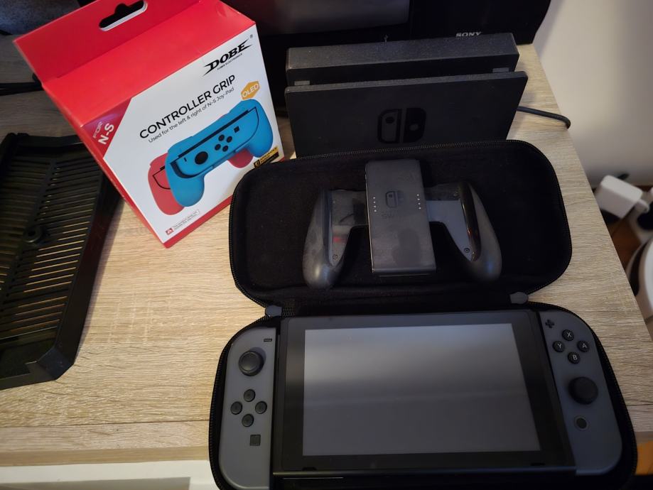 Dolazi sa dockingom, kablom za punjenje,hdmi, kaljenim staklom, kontolerom ,gripovima za kontrolere i prijenosnom torbicom.