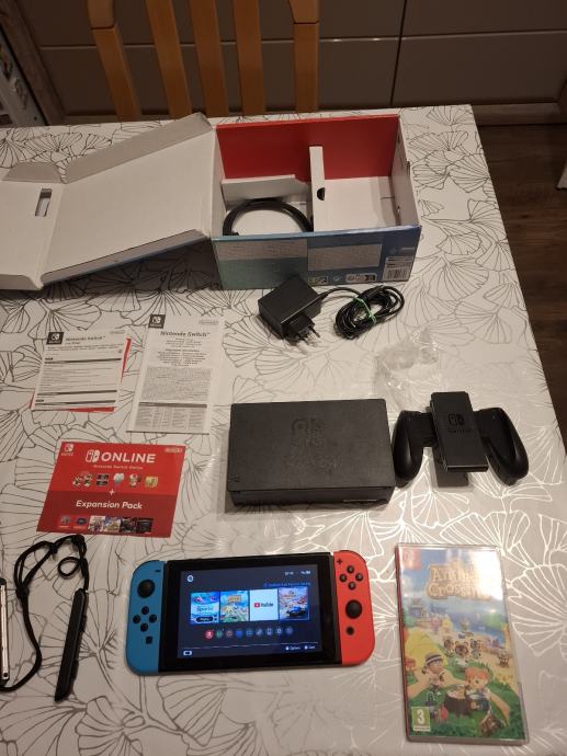 Prodajem Nintendo Switch V2 konzolu u potpunom kompletu s originalnom kutijom i svom pripadajućom opremom. Konzola dolazi s crvenim i plavim Joy-Con kontrolerima, dock stanicom za spajanje na TV, HDMI kabelom, napajačem i Joy-Con držačem.
