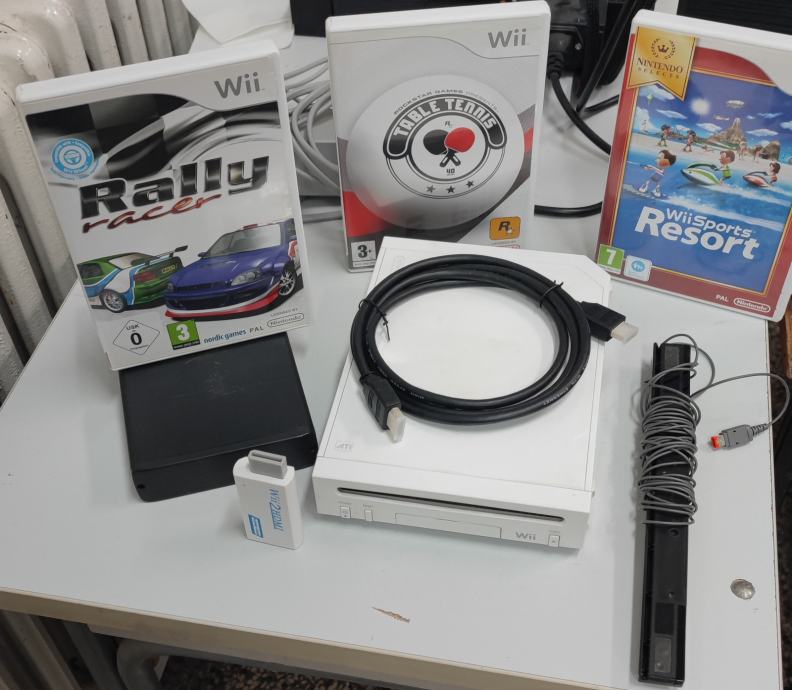 Rabljena Wii konzola , 2 bežična kontrolera , 350 igara na hard disku, skinuta zaštita ( softverski otključano)