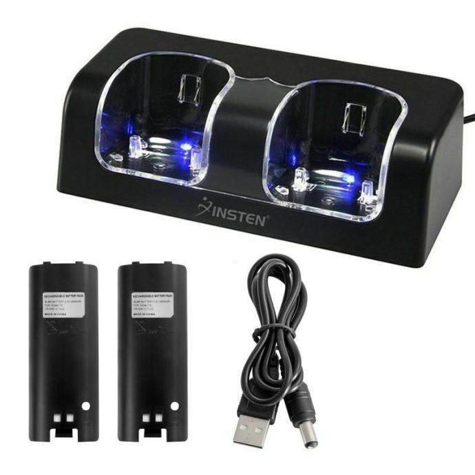 Punjač sa 2 punjive baterije za Vaše Nintendo Wi kontrolere.