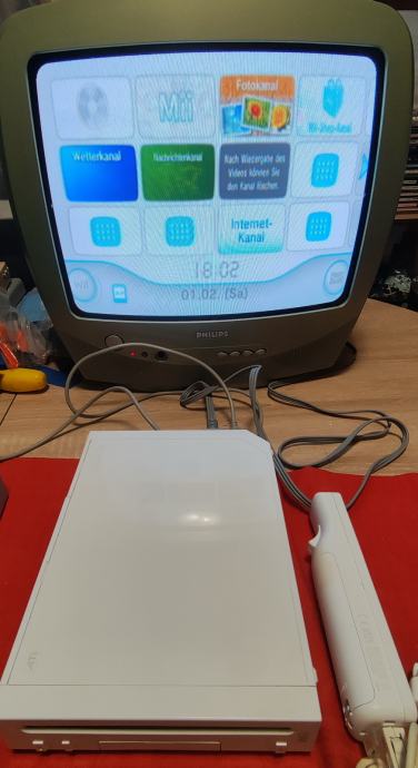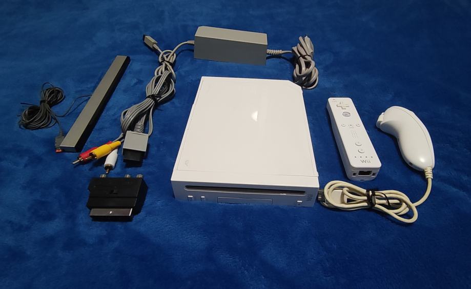 ima sve šta vam treba original napajanje, av kabe, scart dodatak, controller i nunchuk i antrenu za contollere