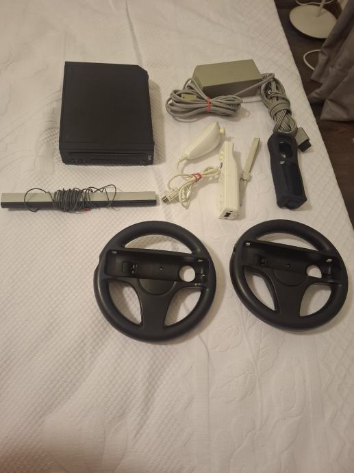 Dolazi sa kontrolerom nunchuk, volanima napajanjem, senzor barom i avi kabelom.