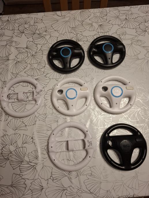 Prodajem set od sedam Nintendo Wii volana. U setu se nalaze volani u bijeloj i crnoj boji - neki su originalni Nintendo Wii volani s logotipom, a neki su bez oznaka. Svi volani služe kao držač za Wii Remote kontroler koji se umeće u sredinu volana.