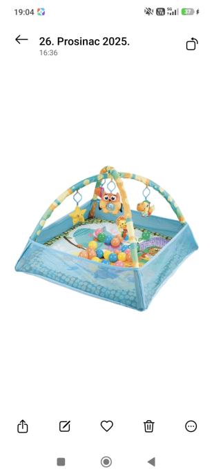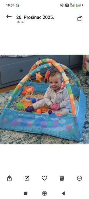 Korišten nekoliko puta po par minuta, beba ne želi unutra nikako, sto je razlog prodaje. Kao nov je. Kupljen u Bima shopu, plaćen oko 70 eur. Dolazi bez loptica. Ova mreža se može spustiti pa bude podloga.