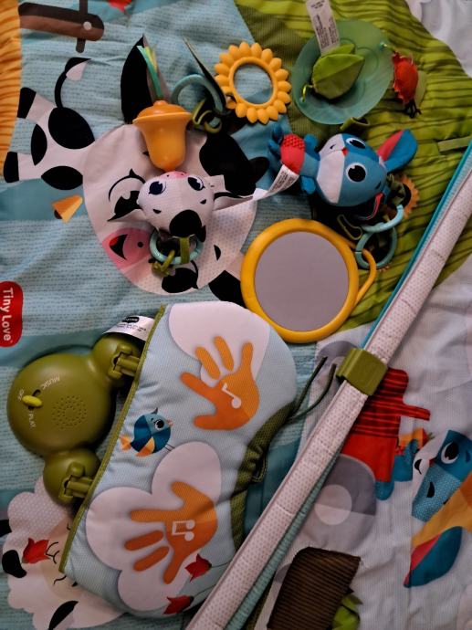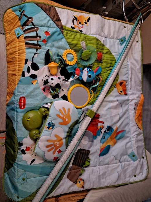 Korišten ali jako očuvan, odličan, svira i ima puno zabavnih sadržaja za bebu...u početku baby gym, a kasnije kad beba naraste i počne puzati postaje savršena podloga za igru sa super dodacima i novim sadržajima.
