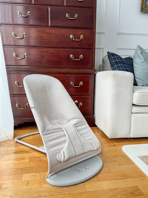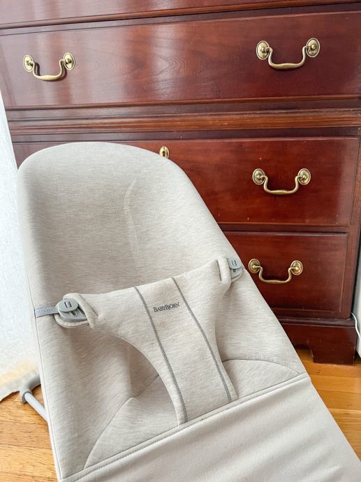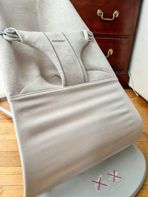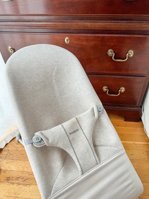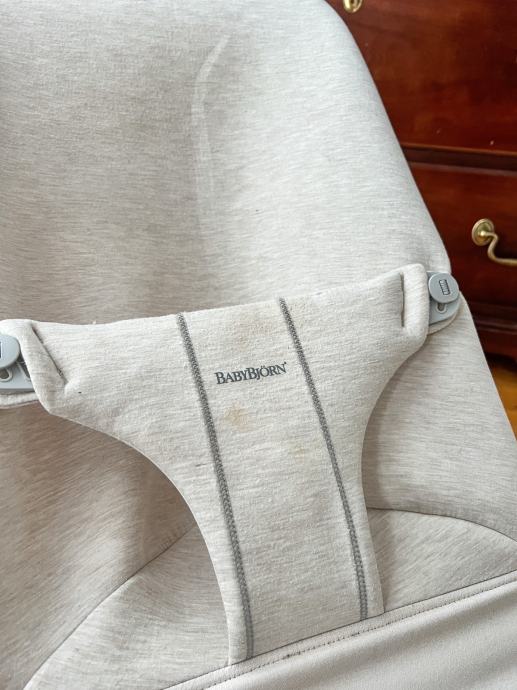Babybjörn njihaljka korištena samo par mjeseci, kupljena nova. Navlaka je oprana par puta i nije izbljedila kao što zna biti kod drugih boja. kod loga ima neprimjetnu mrlju od banane koja mi nije otišla u pranju (na slici), ali možda možete skinuti sa sredstvom za mrlje.