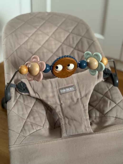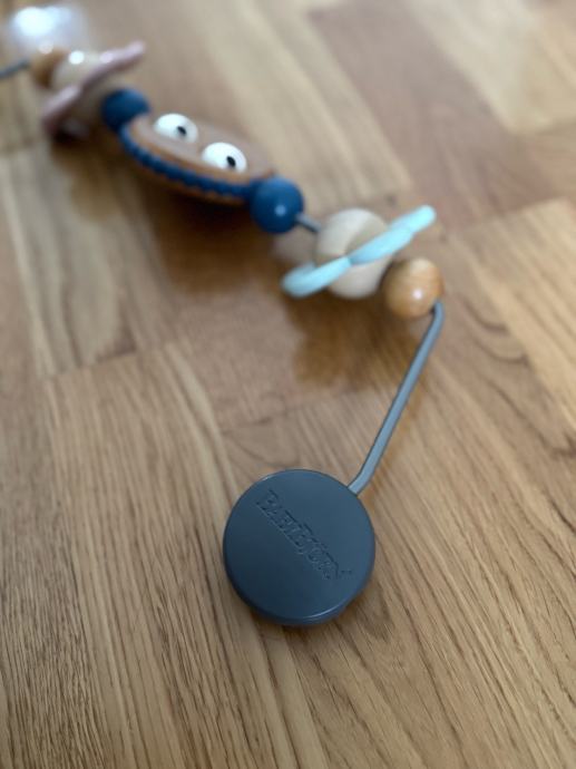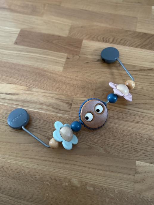 Jednostavno se stavlja i skida s njihaljke. Svi dijelovi igracke se okrecu/vrte te je bebama to veom zanimljivo.