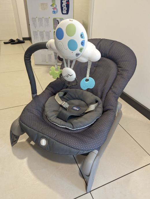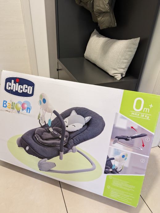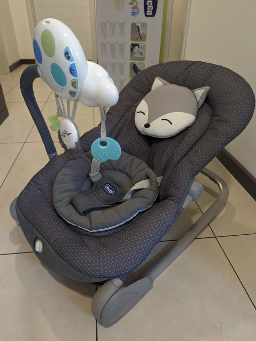 Chicco baloon njihaljka fox gray. Korištena za jedno dijete. Ispravna, očuvana jedino se jastučić malo istrošio sa donje strane zbog pranja, vidljivo na slici. Jastučić za glavu nije uopće korišten. Naslon se može skroz podignuti te se onda koristi kao stolica.