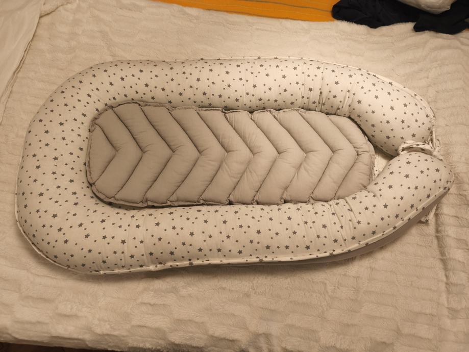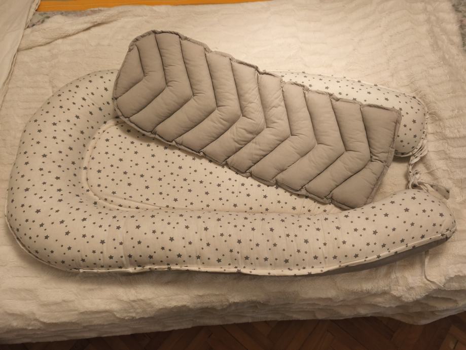 Gnijezdo za bebe Dada&Rocco. U savršenom stanju, malo korišten. Super udoban i praktičan od prvog dana, 0+ mjeseci. Sa dodatnom podlogom koja može služiti i za prematanje ili za u kolica... Širina se može prilagoditi vezicom koja ide cijelom dužinom gnijezda, ovisno o veličini i potrebama bebe. Dno se može proširiti, pa ga mogu koristiti i veće bebe. Periv u perilici rublja.