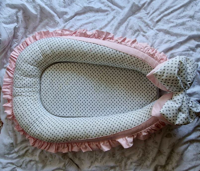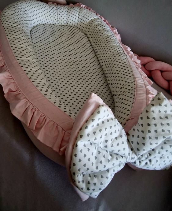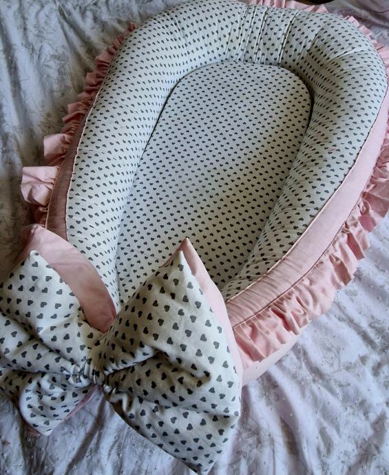 Gnijezdo za bebu u rozoj boji s volanima, jako malo koristeno, kao novo