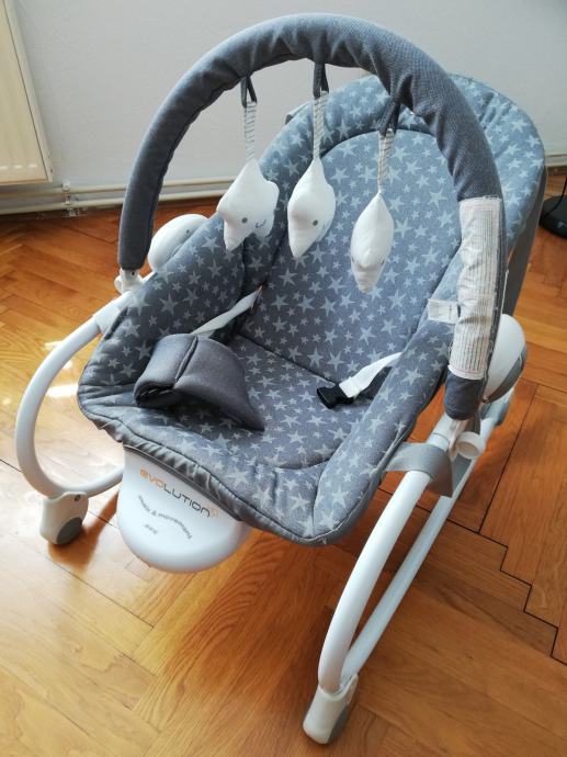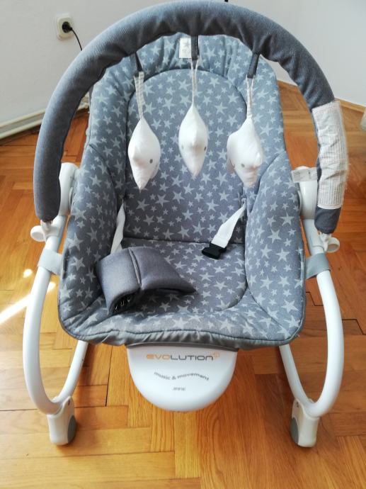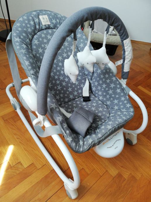 PRODAJEM OČUVANU JANE EVOLUTION LJULJAČKU. SIVA SA ZVJEZDICAMA, MOŽE ZA OBA SPOLA. MASIRA I SVIRA UGODNU GLAZBICU.