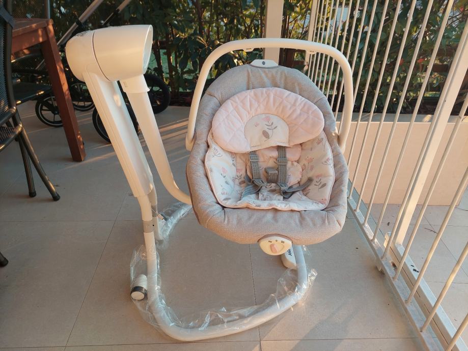 Prodajem Joie električnu njihalicu. Mogučnost podešavanja naslona, vezanje pojasem u 5 točaka. Košara se lako odvaja od baze i može se njihati i ručno. Malo korištena ali bez oštećenja. Šaljem u originalnoj kutiji.