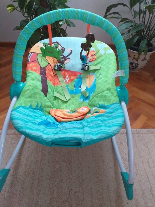 Ležaljka s mogućnosti vibracije i odvojivim lukom s igračkama. Ležaljka ima dvije pozicije - niža za njihanje i viša za sjedenje.