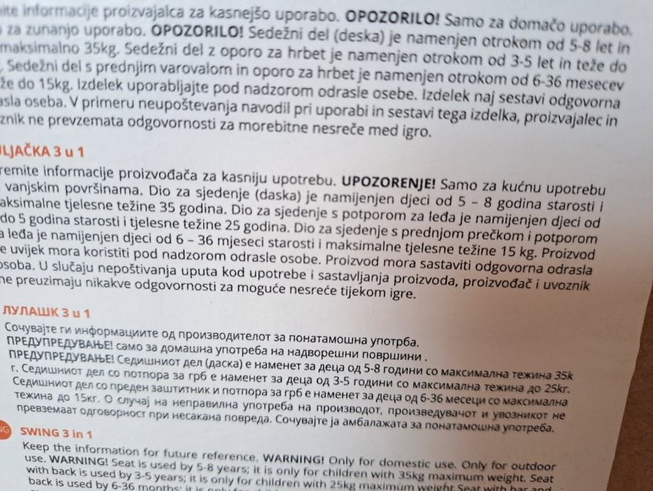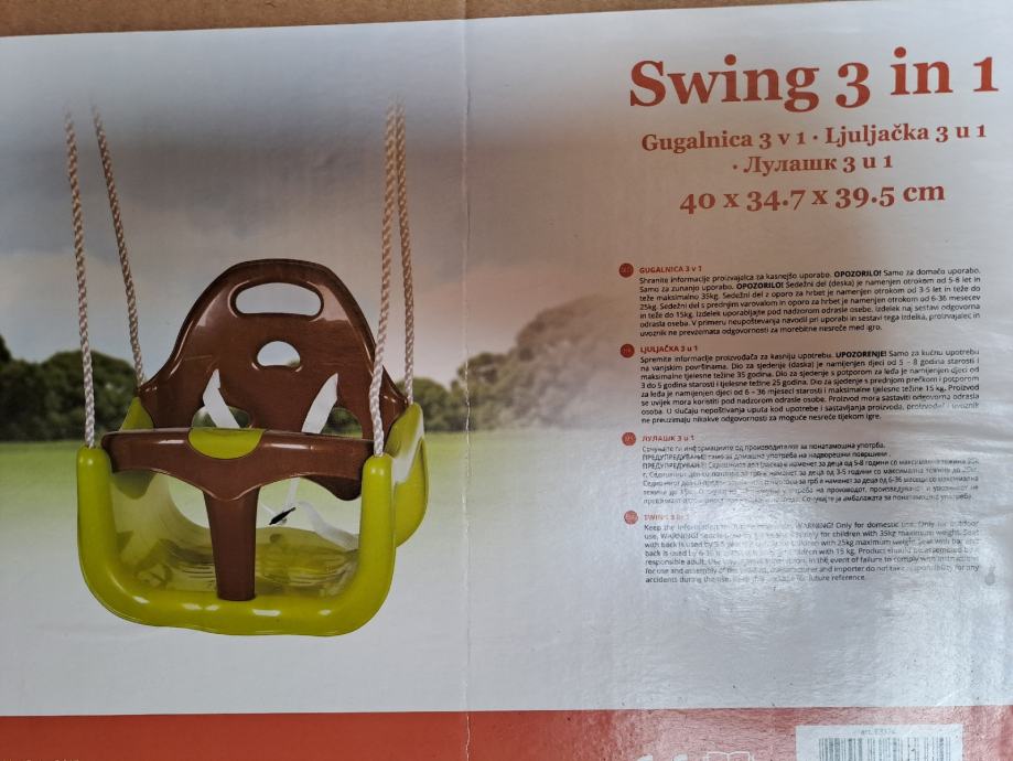 Prodajem potpuno novu ljuljačku s 3 djela ovisno o starosti djeteta. Dio za sjedenje namijenjen je djeci 5- 8 godina, dio za sjedenje s potporom za leđa djeci 3 -5 godina i dio s prečkom i potporom za leđa od 6 -36 mjeseci. Nikad koristena!
