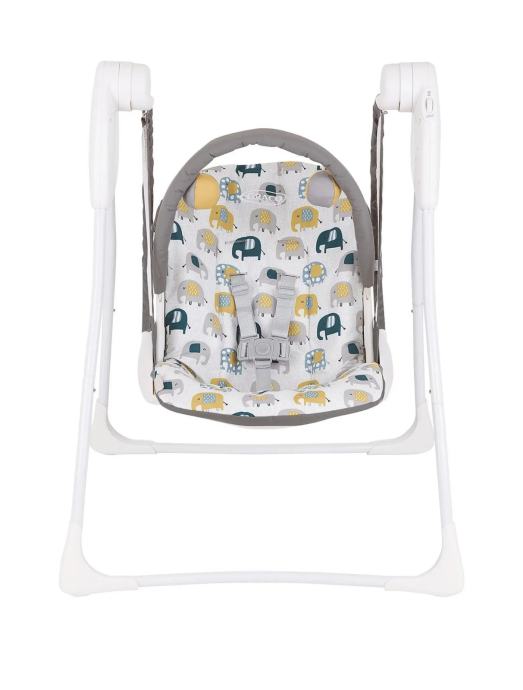 Kompaktna prenosiva ljuljačka sa 2 brzine i 3 nagibna položaja. Od rođenja do oko 9 mjeseci (9 kg). Na ljuljačci se nalaze 2 igračke za vizualnu stimulaciju. Ljuljačka je lagana i kompaktno sklopiva za jednostavno premještanje ili spremanje.
