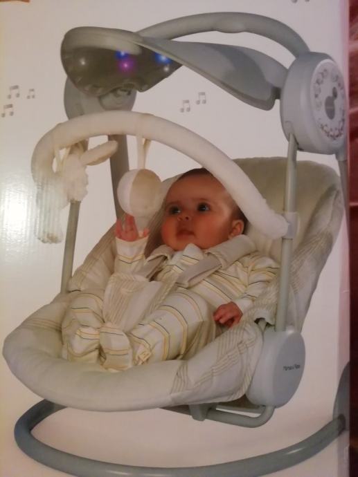 Prodajem njihaljku na baterije Mamas & Papas, sa krovnom svjetlima i 3 brzine ljuljanja. Može služiti i za hranjenje. Od 0+.