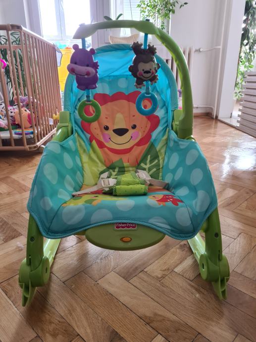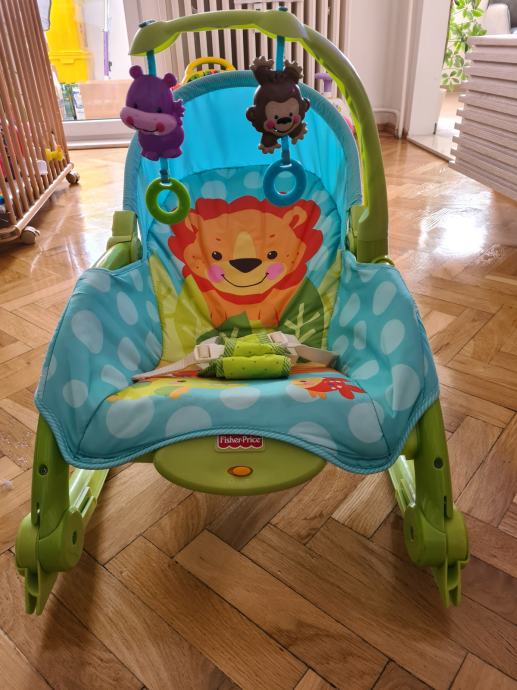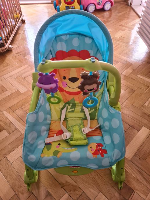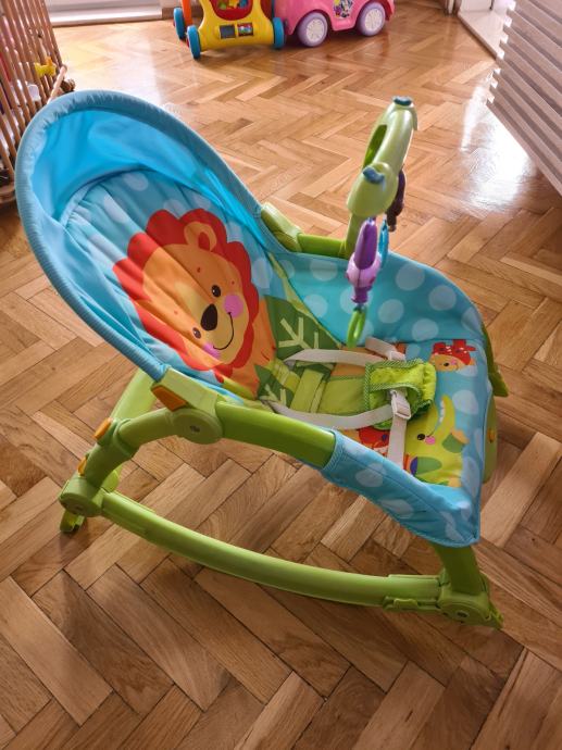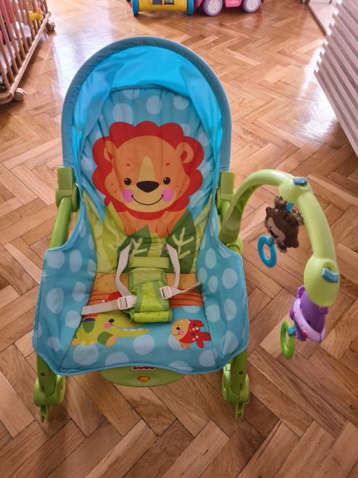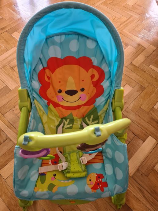 Stolica na nekoliko nivoa, za bebe kao ležaljka i za veću djecu kao stolica. Vibrira i uspavljuje bebu. Navlaka se skida i pere.
