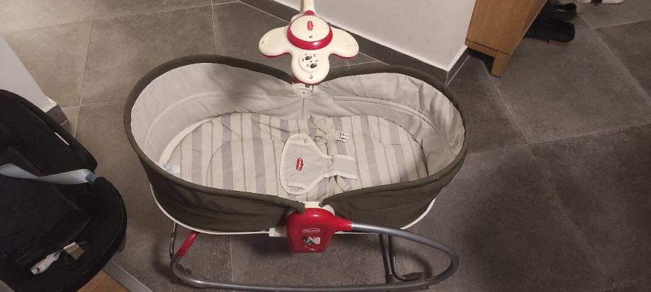 Prekrasni glazbeni vrtuljak zabavlja bebu, potiče razvoj osjetila i motoričke vještine - želja za hvatanjem igračaka.Nježne vibracije. Vrtuljak i vibracije funkcioniraju