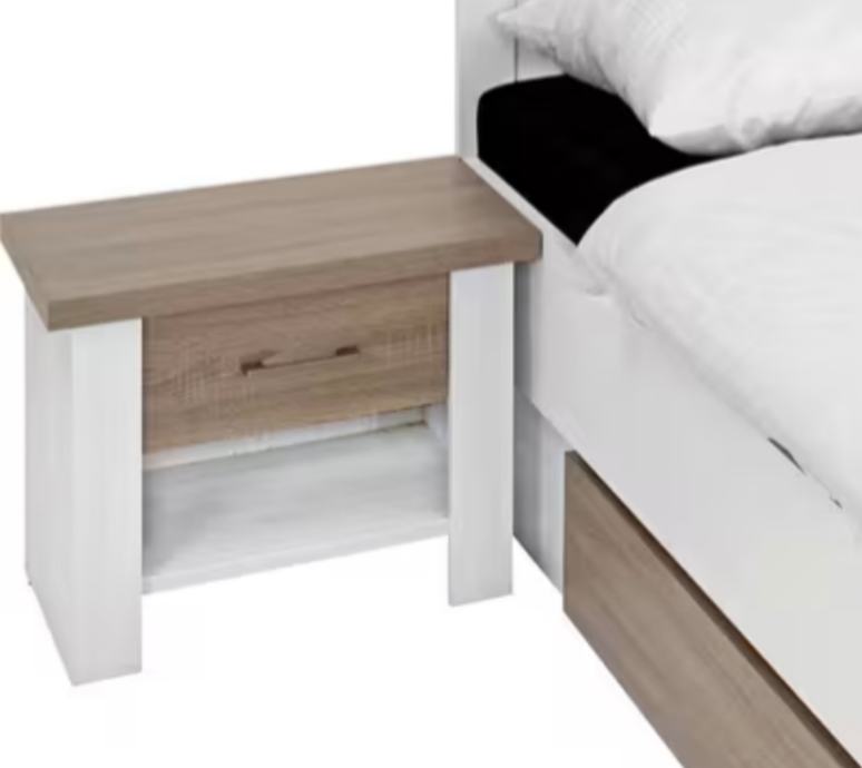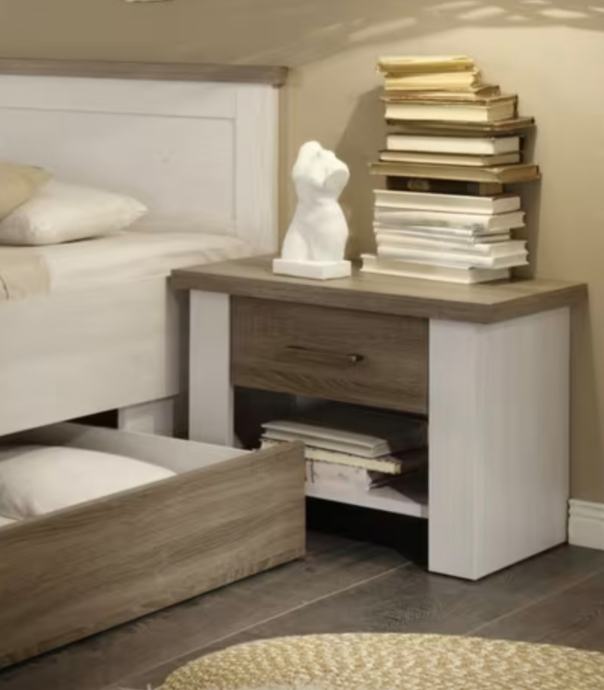 Carryhome noćni ormarići LUCA, potpuno novi, zapakirani (za sastaviti) u kombinaciji bijelog bora i dekora tartuf. Set 2 ormarića.