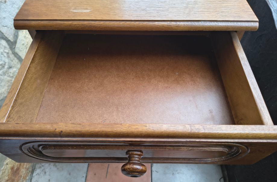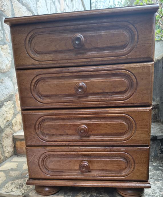 Prodajem drveni ormarić/noćni ormarić od punog drveta, dobro očuvan, super stanje . Mjere ormarića : visina 62 cm, duljina 46 cm, širina 42 cm, 4 ladice. Cijena 35 eura. Osobno preuzimanje u Prigorju Brdovečkom.