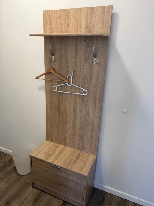 Uz ormarićе dolazi i stalak za vješanje robe te komoda, sve u istoj boji i stilu pa zajedno lijepo funkcioniraju kao usklađeni set.
