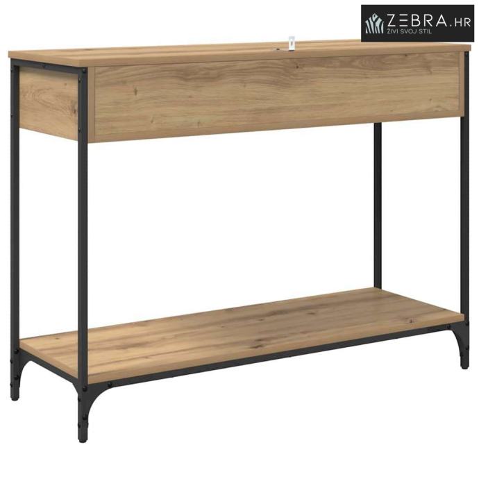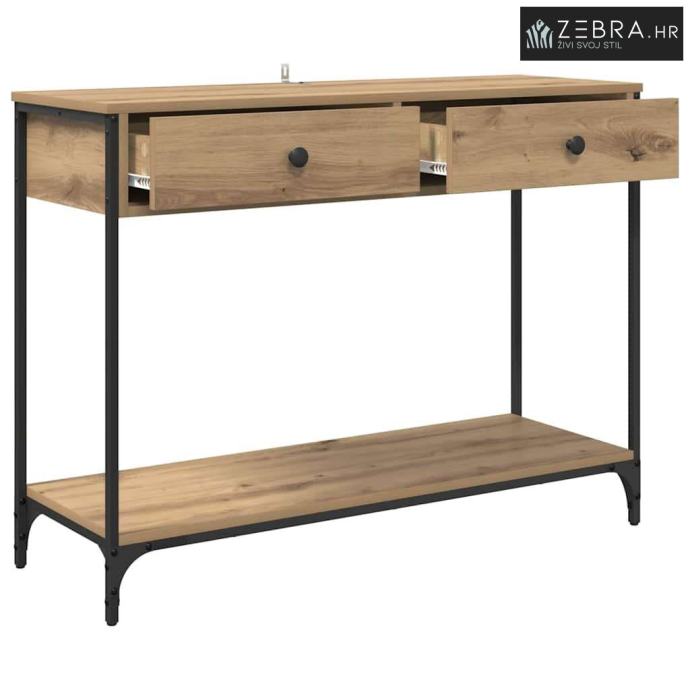 Industrijska estetika: Ovaj konzolni stol ima industrijski stil s teksturiranom drvenom površinom koja donosi sirovu urbanu privlačnost. Metalni okvir i čelične noge dodaju šik dodir svakoj prostoriji, čineći ga odličnim centralnim dijelom modernog dnevnog boravka.