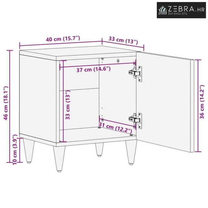 Materijali: Napravljen od čvrstog mango drveta, ormarić je otporan na habanje, pružajući dugotrajan izgled. Njegova površina ističe prirodne uzorke drva, donoseći jedinstveni vizualni efekt koji pojačava mirnoću svake spavaće sobe.