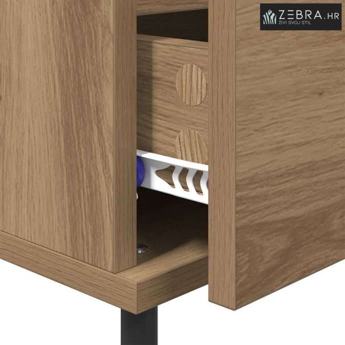 Ovaj noćni ormarić utjelovljuje kombinaciju modernog stila i praktičnosti. Ima jednostavne, minimalističke linije i suptilnu eleganciju, što ga čini odličnim izborom za suvremene spavaće sobe. Odlično je organiziran, pruža dovoljno prostora za lampe, knjige i druge sitnice, pa tako služi kao praktičan i lijep komad namještaja.