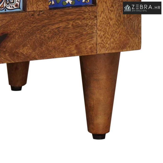 Kvalitetan materijal: Ovaj noćni ormarić je napravljen od masivnog mango drva, nudi odličnu izdržljivost i bezvremenski izgled. Prirodna struktura drveta dodaje drvenasti šarm i snagu ovom komadu. Čvrst okvir jamči stabilnost, odmah donoseći dugovječnost i zadovoljstvo.