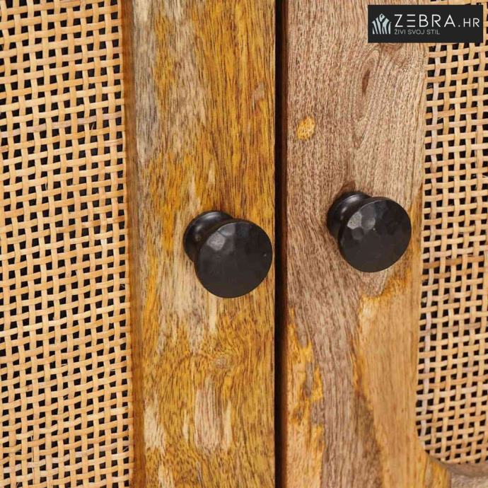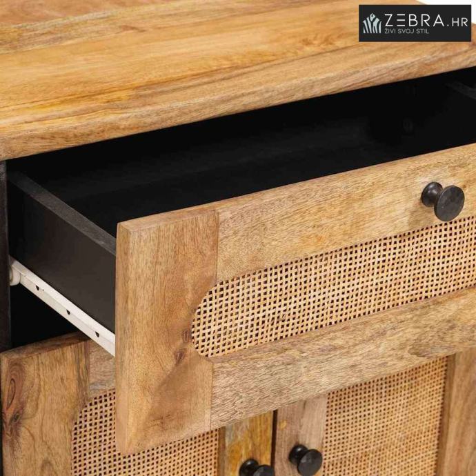 Materijali: Ovaj ormarić je napravljen od vrhunskog masivnog drva manga, pruža bogatu teksturu koja odražava snagu i bezvremenost. Prirodni uzorci drveta dodaju sofisticiranost i otpornost, jamčeći trenutačnost i šarmantnu rustikalnu estetiku u tvojoj spavaćoj sobi. Ovo drvo povećava privlačnost komada dok pruža robusnu građu.