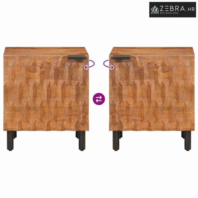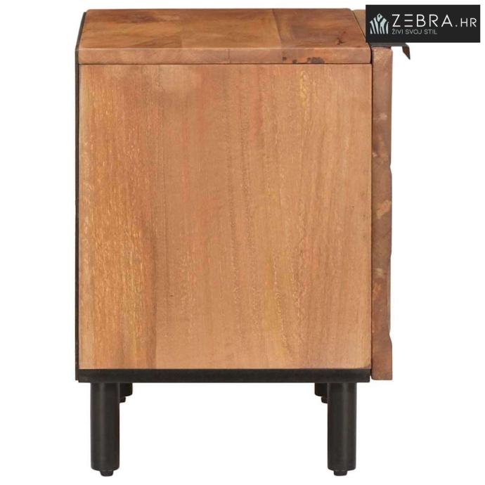 Materijali: Noćni ormarić se sastoji od masivnog drva manga i konstruiranog drva. Ovi materijali osiguravaju čvrstu strukturu i dodaju dublji dodir prirodne elegancije. Njihova otpornosti osigurava dugoročnu upotrebu. Kombinacija drva formira jedinstven izgled s prirodnim uzorcima drveta, obogaćujući prostor.