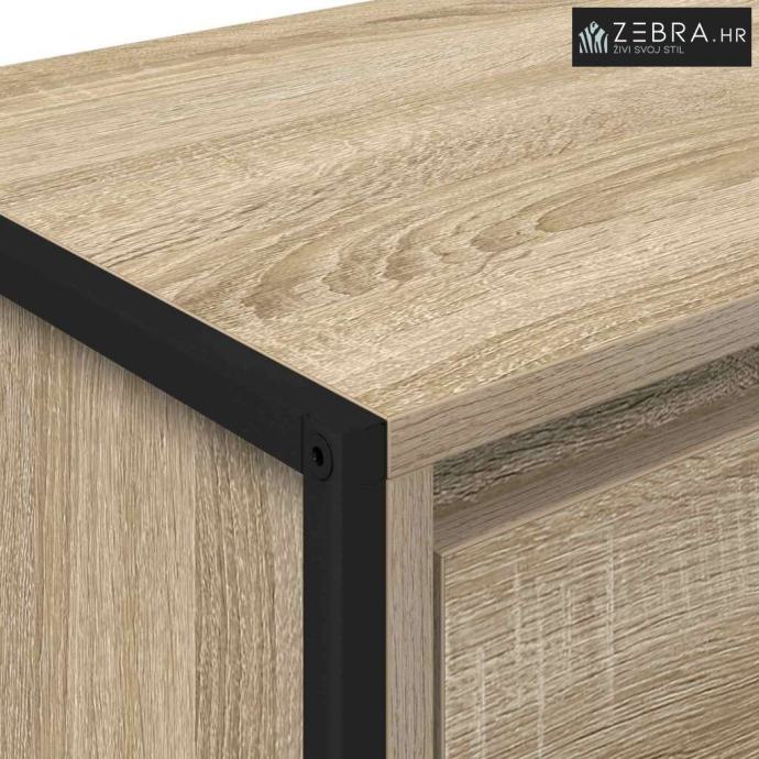Robusni materijali: Izrađen od konstruiranog drva koje daje autentičan, teksturiran izgled uz izdržljive čelične noge, osigurava čvrstu podršku i bezvremenski izgled. Materijali su pažljivo odabrani za njihovu pouzdanost, tako da ormarić izdrži svakodnevnu upotrebu i zadrži svoj šarm. Funkcionalni sastojci: Samostojeći dizajn omogućava fleksibilnost u postavljanju, bez obzira na to ili se uklapa uz vaš krevet ili stolicu za čitanje. Okvir od konstruiranog drva i površine stvaraju toplu i ugodnu atmosferu, potičući ugodan ambijent u vašem prostoru. Izdržljive karakteristike: Ovaj ormarić naglašava dugotrajnu izgradnju, kombinira industrijsku čvrstoću s estetskom finoćom. Izrađen je za one koji cijene kvalitetu i stabilnost, nudeći uvjerenje o njegovoj dugovječnosti tijekom svakodnevne upotrebe. Praktična upotreba: Savršeno usklađen za spavaće sobe, ali će se jednako dobro uklopiti i u dnevnim prostorima. Njegove ploče i drvene površine pružaju dovoljno prostora za noćne stvari ili dekorativne predmete, dobro se uklapajući u različita okruženja, od urbanih stanova do udobnih vikendica. Savjeti za održavanje: Čišćenje se svodi na to da obrišete suhom krpom, a površinu lagano održavate. Izbjegavajte jake kemikalije za očuvanje izgleda, čime osiguravate da ormarić dugo izgleda dobro. Boja: Sonoma