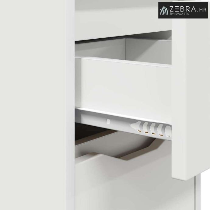 Uključene komponente: Ovaj ormarić ima kuglične kliznike ladica, što omogućava glatko otvaranje. Pohranite osobne stvari jednostavno s ladicama koje se lako kreću, čineći vaš prostor urednim. Crne okrugle noge dodaju stabilnost i tradicionalni dodir.
