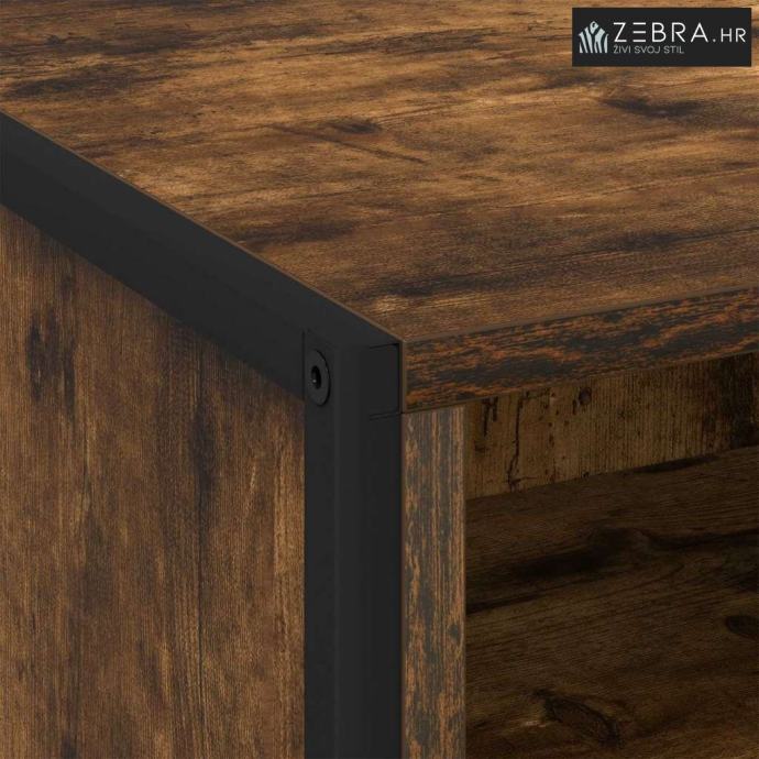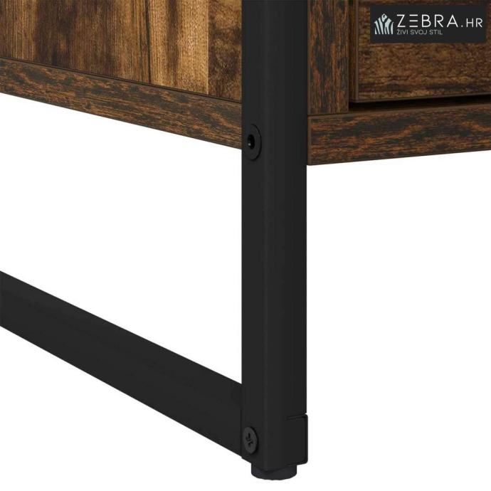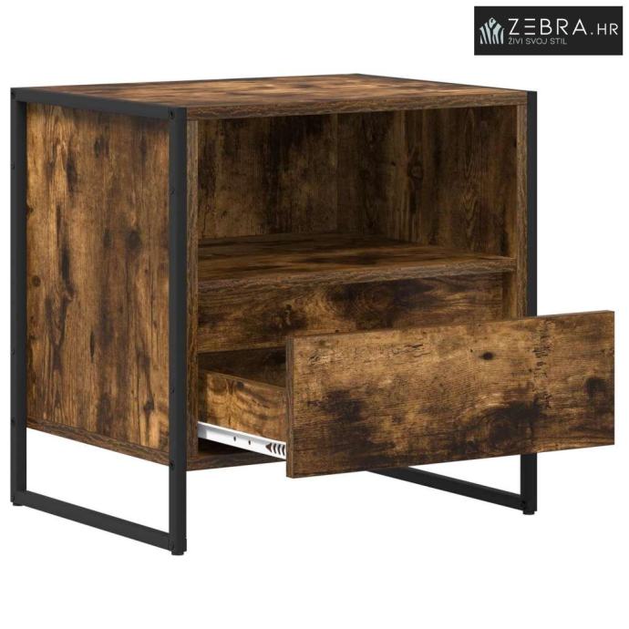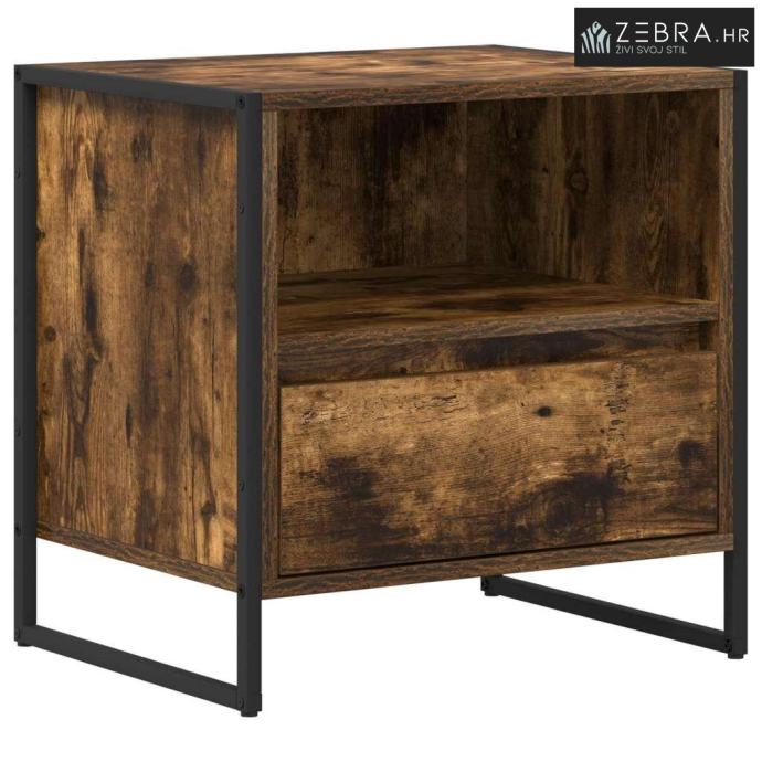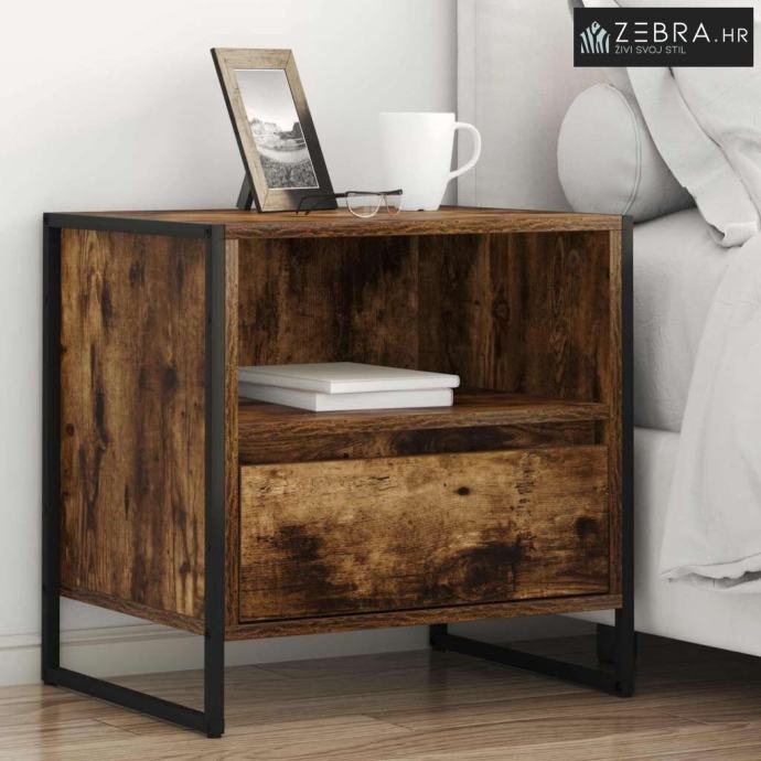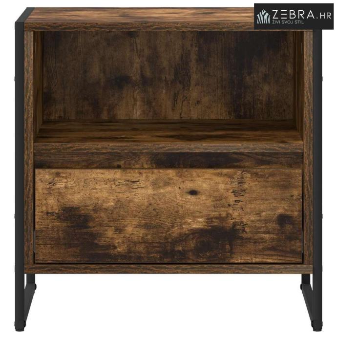 Industrijska estetika: Samo njegovi sirovi materijali i utilitarni počeci čine da ovaj namještaj odiše industrijskim stilom koji je trendi i vječan. Njegov dizajn uključuje jednostavne elemente i opušten pristup, savršeno za moderne prostore ili one koji žele nostalgični dodir. Robustna kompozicija: Izrađen od visokokvalitetnog konstruiranog drva, ovaj ormarić jamči čvrstoću. Površina je glatka i otporna na svakodnevno trošenje, čineći ga idealnim za dugotrajnu upotrebu u užurbanim spavaćim sobama. Čelične noge pružaju dodatnu stabilnost, osiguravajući da komad ostane postojan. Funkcionalne značajke: Opremljen okvirom i površinom od konstruiranog drva, ovaj noćni ormarić nudi ljepotu i funkcionalnost. Čvrsta građa podržava razne noćne potrepštine, od lampi do knjiga, osiguravajući da su vam na dohvat ruke, ali uredno raspoređene. Svestranost smještaja: Ovaj samostojeći noćni ormarić može se lako smjestiti gdje god želite u spavaćoj sobi. Njegova dimenzija i dizajn čine ga prilagodljivim, pružajući stylish utočište za vaše noćne potrepštine. Upute za njegu: Održavanje zahtijeva minimalnu pažnju, samo obrišite suhom krpom da uklonite svakodnevne naslage. Izbjegavajte jake kemikalije kako biste očuvali njegov svjež izgled i osigurali dugotrajno uživanje u svakom okruženju spavaće sobe. Boja: Dimni hrast